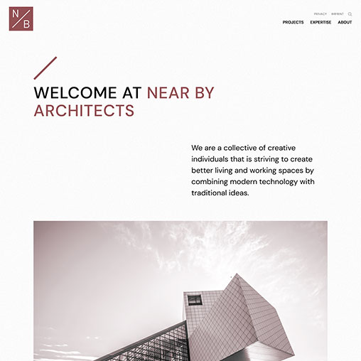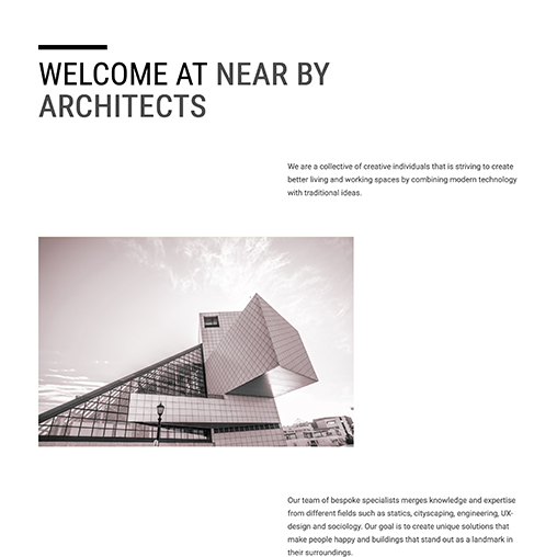 Demo website for a fictional studio with a minimal design and a reduced color-palette.