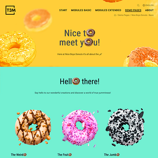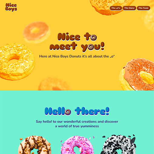 Demo website for a fictional Donut-Brand with vivid colors and juicy pics.